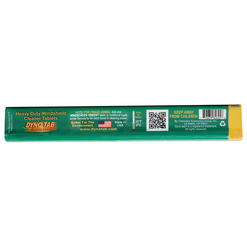 | Product Name | Dyno-tab® Windshield Cleaner 82625 | Tube Contains 25 tablets, Each tablet makes 1 gallon (3.79 liters) |